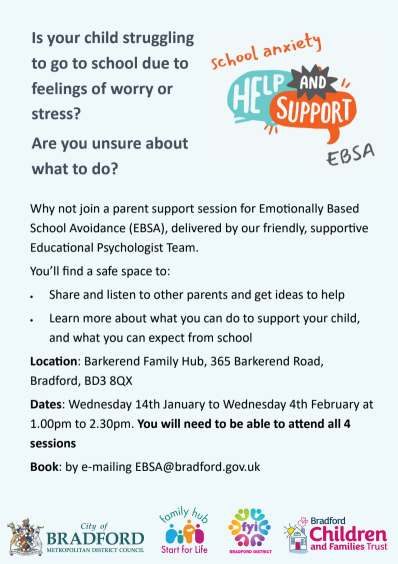 Reminder for Nursery ParentsReception 2025Reminder: for admission into Reception Class September 2026, you must complete the Online Application Form on the Bradford Council website www.bradford.gov.uk/education by 15th January 2026. If you have any problems please speak to Mrs. Spafford. |